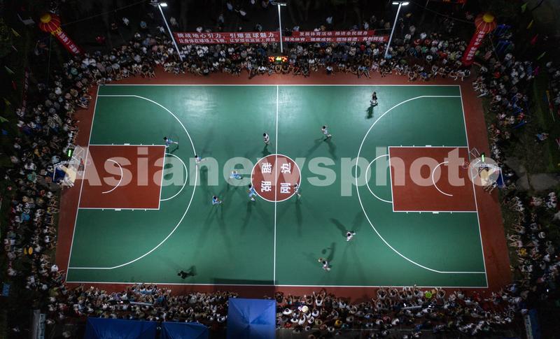 图片说明:2023年7月25日,村民在贵州省从江县刚边壮族乡良田村参加篮球比赛。