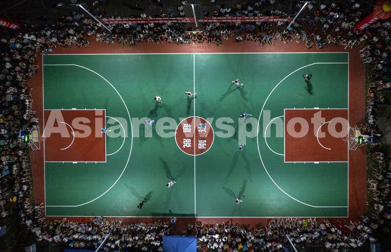 图片说明:2023年7月25日,村民在贵州省从江县刚边壮族乡良田村参加篮球比赛。