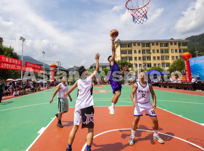 图片说明:2023年7月25日,村民在贵州省从江县刚边壮族乡良田村参加篮球比赛。