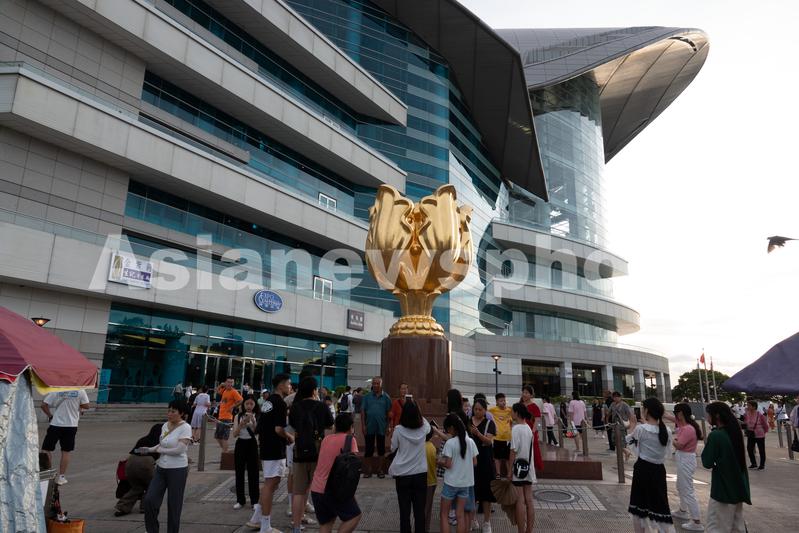 图片说明:2023年7月23日,香港金紫荆广场上游客众多,来自各地的游客纷纷在此停留拍照打卡。