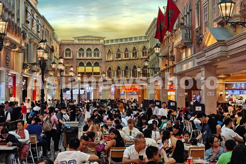 2023年7月26日,澳门迎来夏季旅游旺季,当日晚间,威尼斯人度假综合体的美食广场内食客满满当当。
