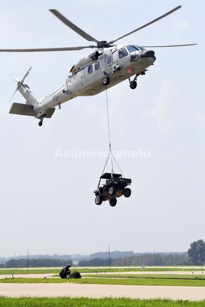 直-20和直-10进行空降突击等课目演练,吊挂车辆