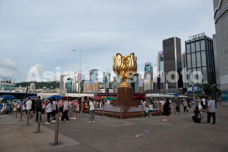 图片说明:2023年7月23日,香港金紫荆广场上游客众多,来自各地的游客纷纷在此停留拍照打卡。