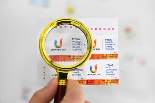 2023年7月28日,在中国邮政集团公司河北省新乐市分公司拍摄的《成都第31届世界大学生夏季运动会》纪念邮票。
