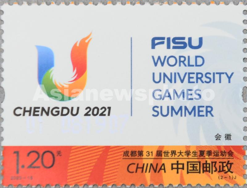 2023年7月28日,在中国邮政集团公司河北省新乐市分公司拍摄的《成都第31届世界大学生夏季运动会》纪念邮票。