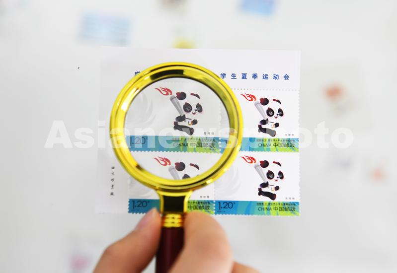 2023年7月28日,中国邮政集团公司河北省新乐市分公司工作人员展示发行的《成都第31届世界大学生夏季运动会》纪念邮票。当日,中国邮政发行《成都第31届世界大学生夏季运动会》纪念邮票一套2枚,邮票图案名称分别为会徽、吉祥物。全套邮票面值2.40元。