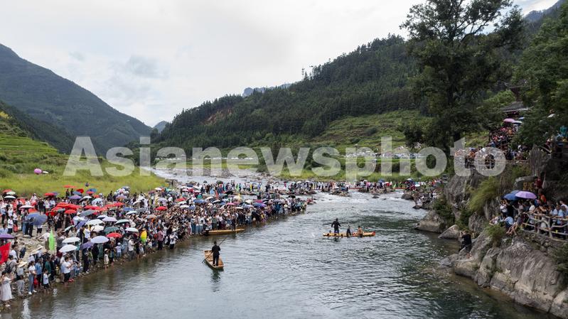 2023年7月31日是农历六月十四日,贵州省黔东南苗族侗族自治州从江县刚边壮族乡刚边村迎来了一年一度的传统节日“跳水节”,当地壮族同胞欢聚在三百河河畔,举行“煨酒石”祭祀、跳水选亲、壮歌对唱、竹排漂流、戏水表演等活动,欢庆佳节。