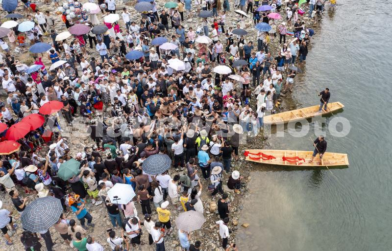 2023年7月31日是农历六月十四日,贵州省黔东南苗族侗族自治州从江县刚边壮族乡刚边村迎来了一年一度的传统节日“跳水节”,当地壮族同胞欢聚在三百河河畔,举行“煨酒石”祭祀、跳水选亲、壮歌对唱、竹排漂流、戏水表演等活动,欢庆佳节。