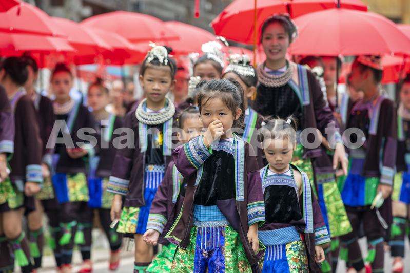 2023年7月31日,在贵州省从江县刚边壮族乡刚边村,壮族姑娘前往参加“煨酒石”祭祀活动。