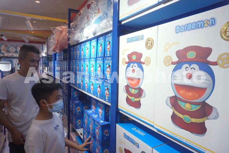 近日,“哆啦A梦”快闪店亮相杭州一家商场,各式各样的机器猫公仔及其文创产品吸引不少顾客前来观看选购,仿佛让人们重新回到了“童年”。
