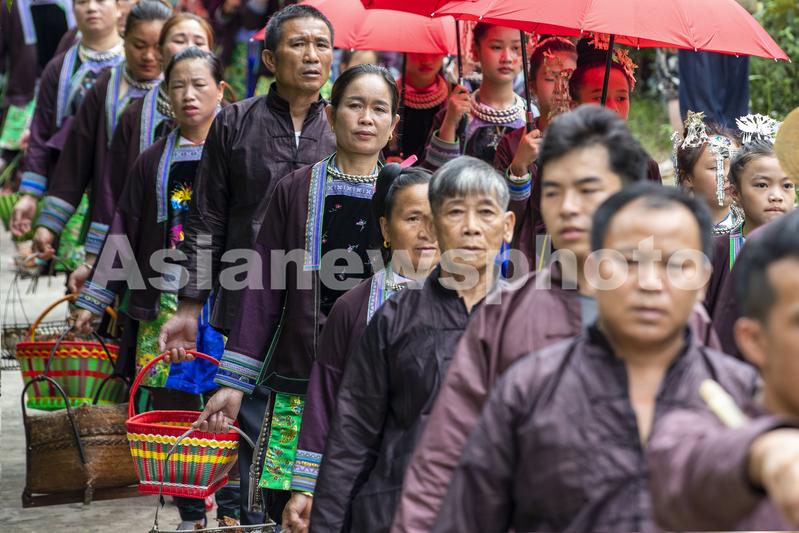 2023年7月31日,在贵州省从江县刚边壮族乡刚边村,壮族同胞前往参加“煨酒石”祭祀活动。