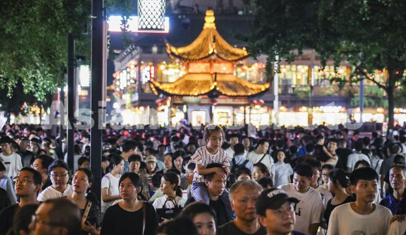 图片说明:2023年8月14日,江苏省南京市,秦淮河畔夫子庙景区游人如织。