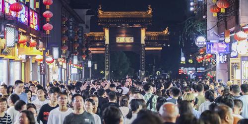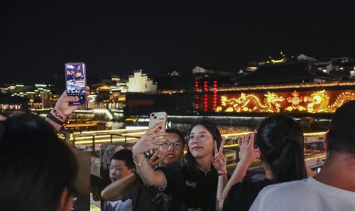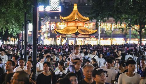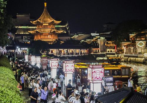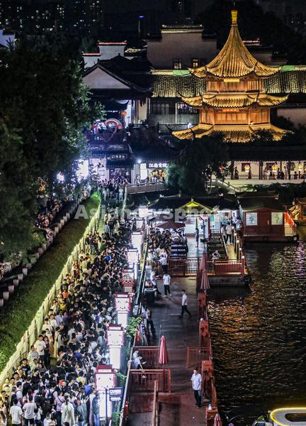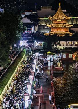 图片说明:2023年8月14日,江苏省南京市,秦淮河畔夫子庙景区游人如织。