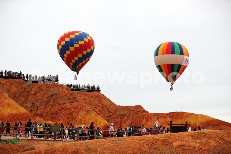 8月16日,热气球飞越甘肃张掖七彩丹霞景区。