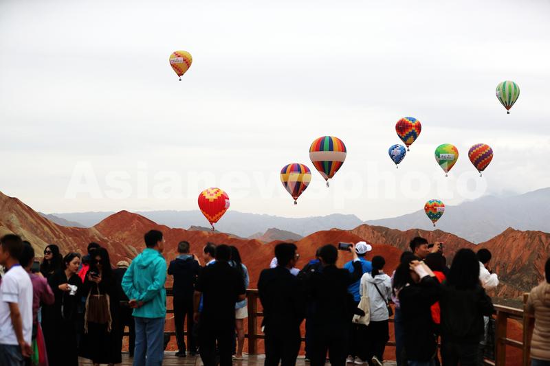 8月16日,热气球飞越甘肃张掖七彩丹霞景区。