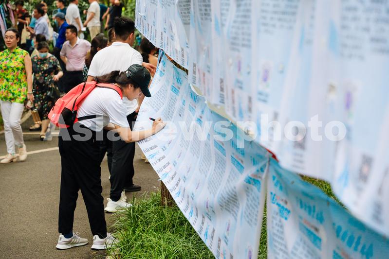 2023年8月20日,市民在山东济南第17届七夕千佛山相亲大会上填写相亲信息。