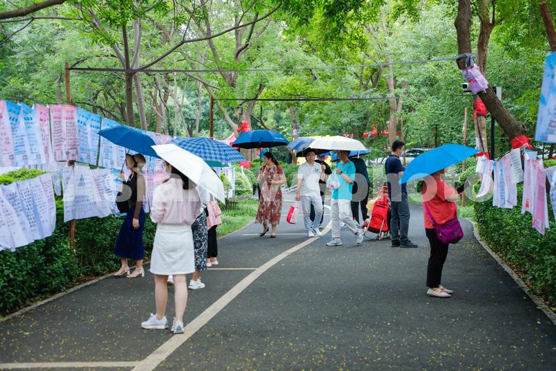 2023年8月20日,市民在山东济南第17届七夕千佛山相亲大会上观看相亲信息。