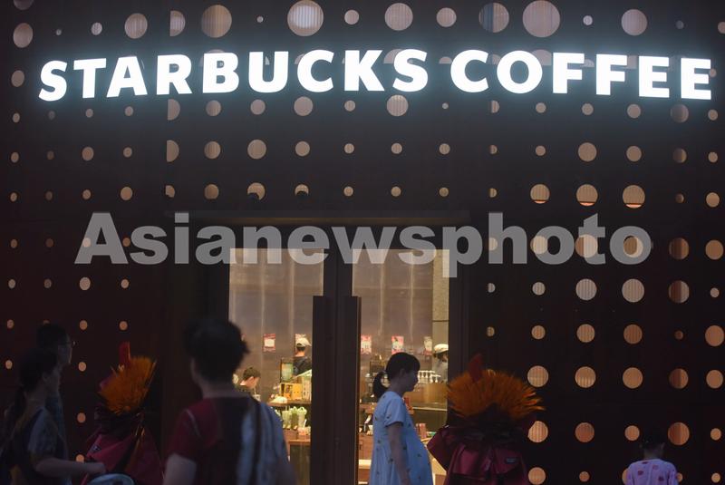 2023年8月20日,杭州市民在大型油罐改建而来的星巴克门店里品尝咖啡。