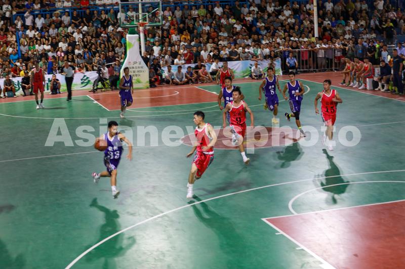 图片说明:8月17日,全国和美乡村篮球大赛(村BA)西南赛区大区赛在贵州省黔东南州台江县台盘村拉开帷幕。这是开赛当天激烈的比赛现场。