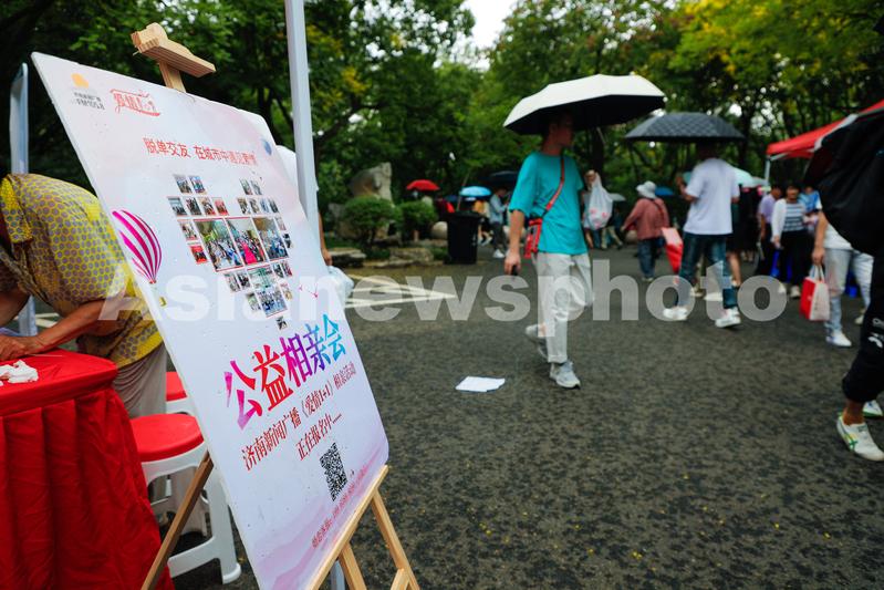 2023年8月20日,市民在山东济南第17届七夕千佛山相亲大会上观看相亲信息。