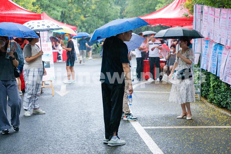 2023年8月20日,市民在山东济南第17届七夕千佛山相亲大会上观看相亲信息。