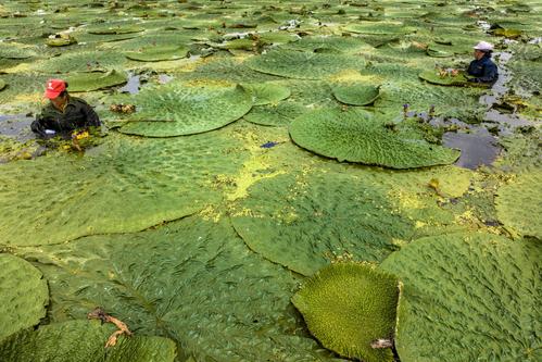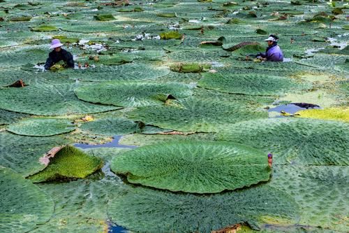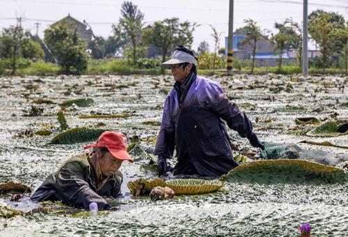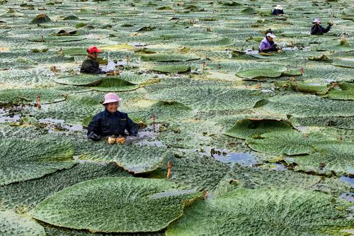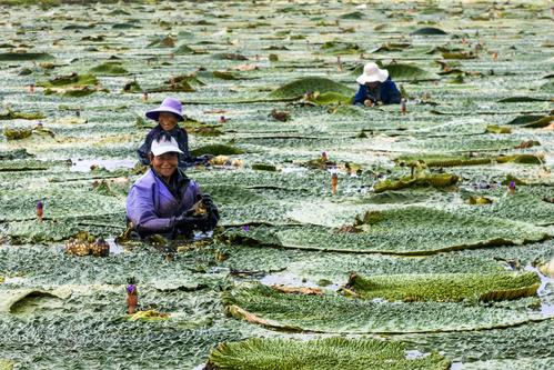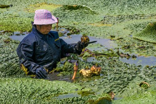 江苏泰州:芡实遍芳塘 农民采收忙 查看组图