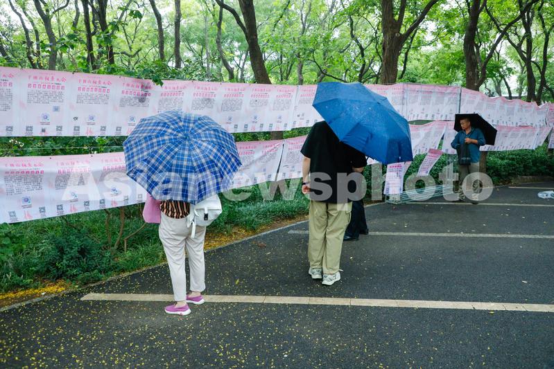 2023年8月20日,市民在山东济南第17届七夕千佛山相亲大会上观看相亲信息。