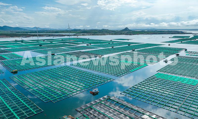 图片说明:2023年8月21日,山东省荣成市石岛管理区桑沟湾海洋牧场,一场暴雨过后,天空出现彩虹景观。