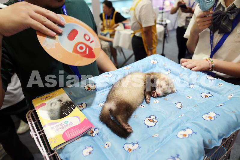 2023年8月18日,上海,亚洲宠物展览会特设异宠馆展示常见家宠之外的“另类宠物”,小动物雪貂(小龙貂)是今年的新面孔。