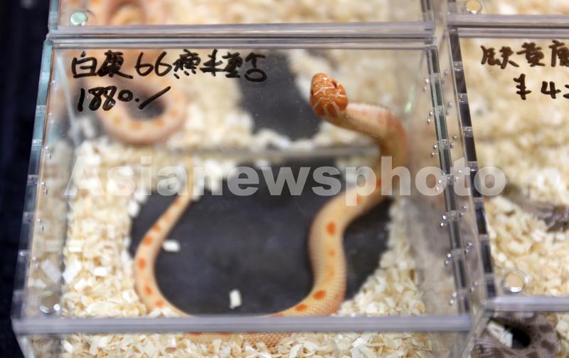 2023年8月18日,上海,亚洲宠物展览会特设异宠馆展示常见家宠之外的“另类宠物”,一条小蛇的价格近2000元人民币。