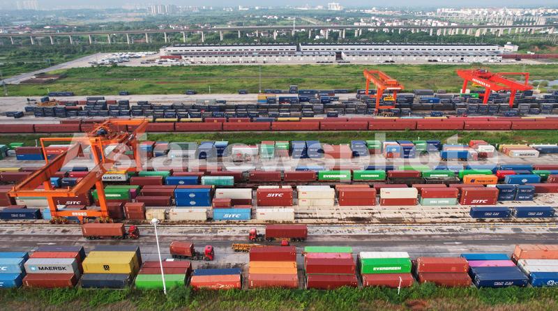 2023年8月22日,一列由52节车厢组成,满载汽车零配件、医疗器械、服装等货物的班列从南昌国际陆港驶出,驶向浙江宁波北仑港。据了解,今年1-7月,南昌国际陆港开行外贸班列920列,65526个标箱,货值约16.9975亿美元,分别同比增长43.97%、71.72%、70.05%,为江西制造的优质产品走向世界提供了一条低价、便捷的大通道。