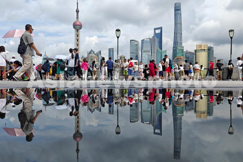 2023年8月23日,上海外滩景区游客众多,天空中云系丰富多变,城市风景格外优美。