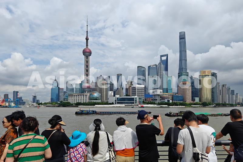 2023年8月23日,上海外滩景区游客众多,天空中云系丰富多变,城市风景格外优美。