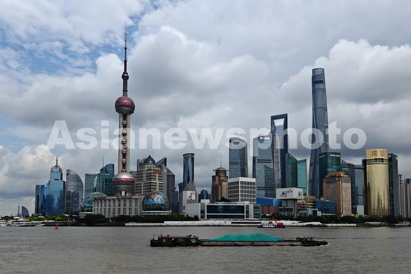2023年8月23日,上海近几天进入“晴雨”天切换模式,时常还有“太阳雨”。当日中午时分,外滩景区游客众多,天空中阳光“露脸”,云系丰富多变,城市风景格外优美。