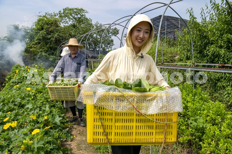 图片说明:2023年8月25日,在浙江省金华市金东区赤松镇北山口村的佛手基地里,工人们正忙着搬运刚刚采摘的新鲜佛手。