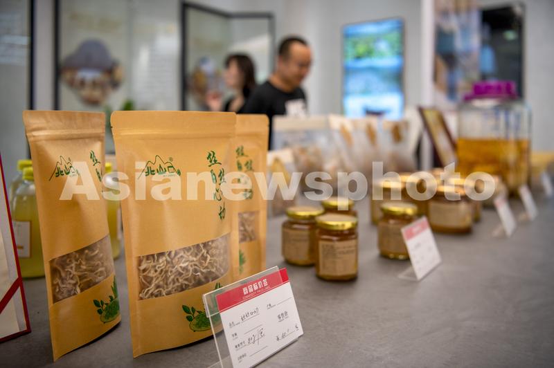 图片说明:2023年8月25日,在浙江省金华市金东区赤松镇北山口村文旅会客厅里,佛手果酱、佛手茶以及佛手茶歇点心等衍生产品吸引游客参观。