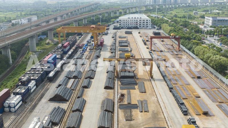 图片说明:2023年8月25日,在安徽省合肥庐阳经济开发区辖区中铁四局物资公司合肥分公司的钢材物料现场,技术人员正在通过数据平台远程对钢材进行进出货调配。