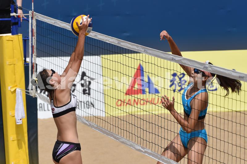 图片说明:2023年8月25日,在江苏南京汤山国际沙排体育公园进行的U19女子组比赛。