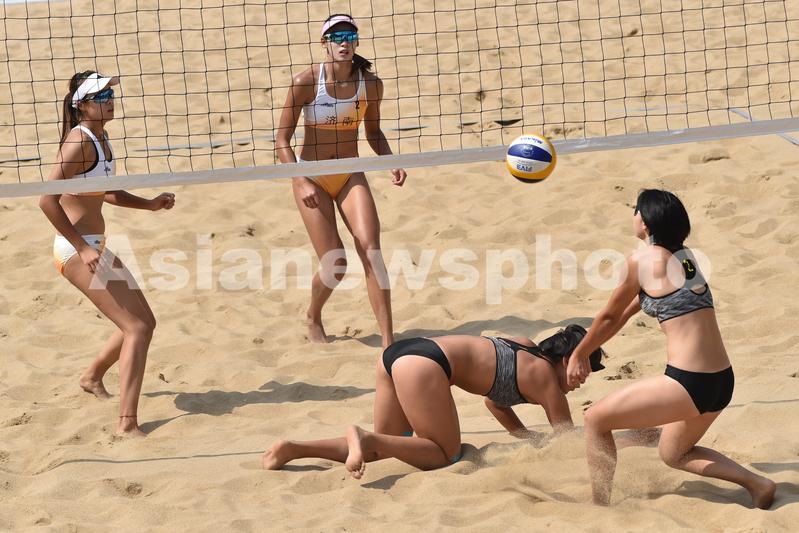 图片说明:2023年8月25日,在江苏南京汤山国际沙排体育公园进行的U19女子组比赛。