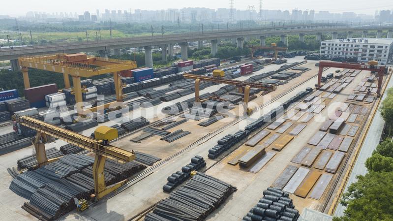 图片说明:2023年8月25日,在安徽省合肥庐阳经济开发区辖区中铁四局物资公司合肥分公司的钢材物料现场,技术人员正在通过数据平台远程对钢材进行进出货调配。