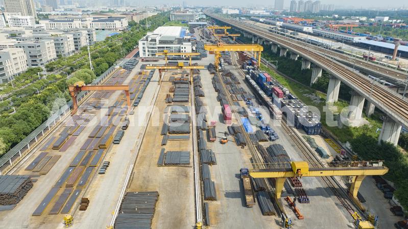 图片说明:2023年8月25日,在安徽省合肥庐阳经济开发区辖区中铁四局物资公司合肥分公司的钢材物料现场,技术人员正在通过数据平台远程对钢材进行进出货调配。