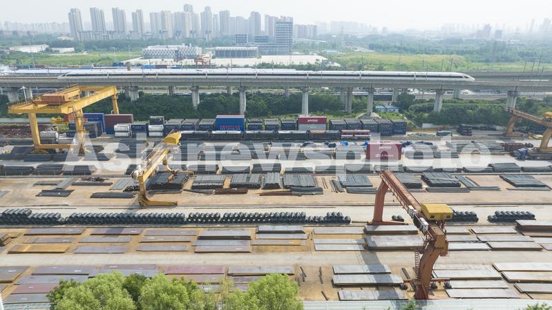图片说明:2023年8月25日,在安徽省合肥庐阳经济开发区辖区中铁四局物资公司合肥分公司的钢材物料现场,技术人员正在通过数据平台远程对钢材进行进出货调配。