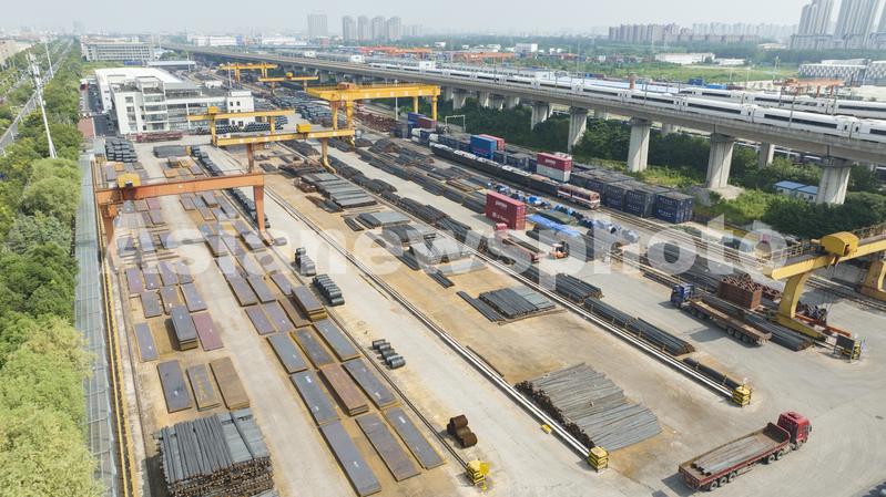 图片说明:2023年8月25日,在安徽省合肥庐阳经济开发区辖区中铁四局物资公司合肥分公司的钢材物料现场,技术人员正在通过数据平台远程对钢材进行进出货调配。