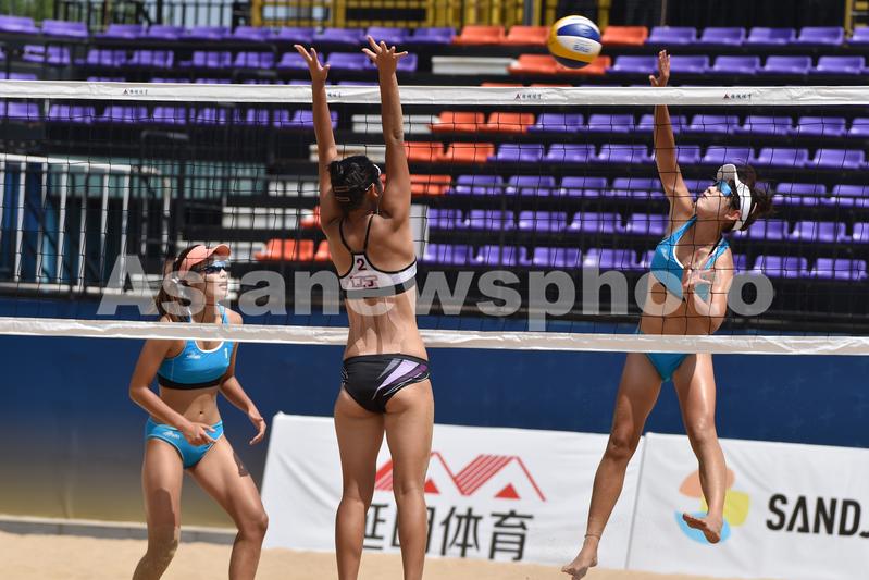 图片说明:2023年8月25日,在江苏南京汤山国际沙排体育公园进行的U19女子组比赛。