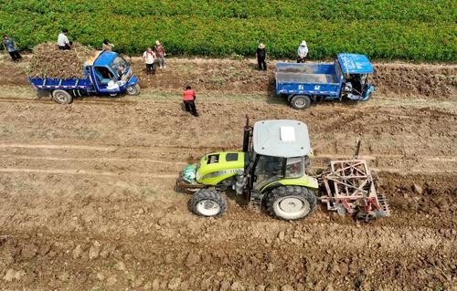 8月24日,在安徽省亳州市谯城区张店乡岳楼村,农民在田间收获中药材种白芍。