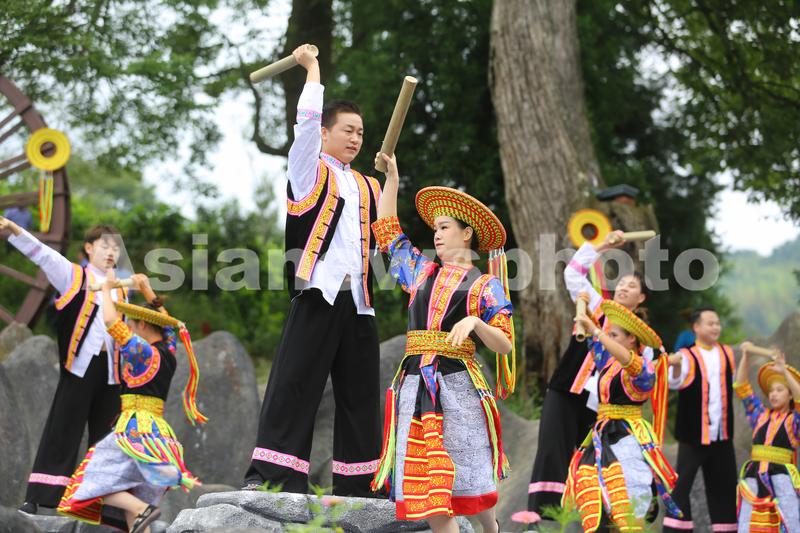 2023年8月24日,湖南省邵阳市隆回县花瑶同胞在“讨僚皈”民俗风情节上表演传统舞蹈——“花瑶样唸噹”。