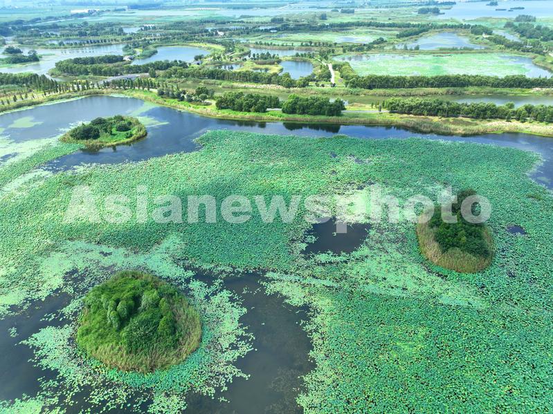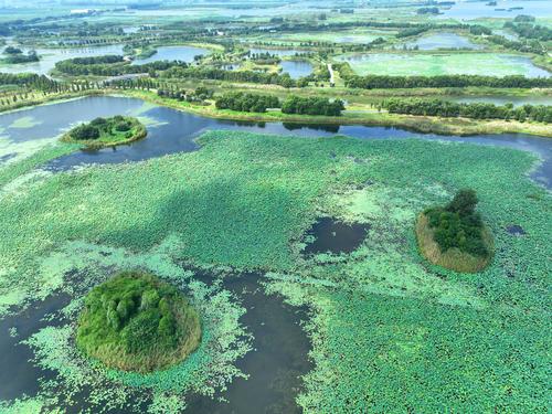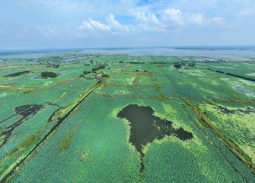 图片说明:2023年8月26日在江苏省淮安市金湖县拍摄的白马湖国家湿地公园美丽景色。