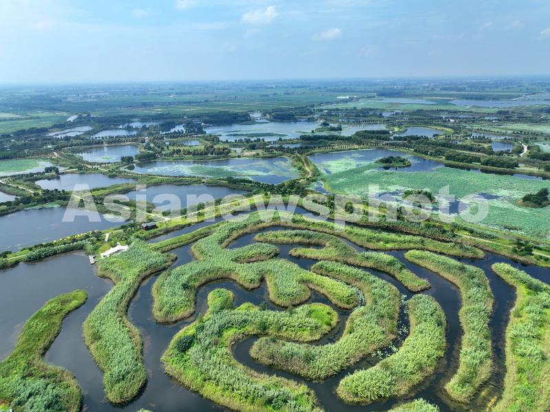 图片说明:2023年8月26日在江苏省淮安市金湖县拍摄的白马湖国家湿地公园美丽景色。