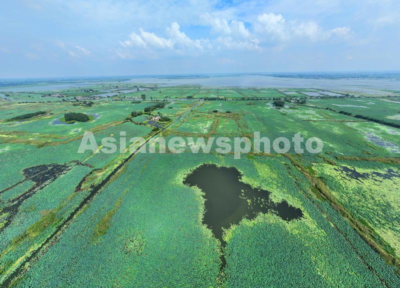 图片说明:2023年8月26日在江苏省淮安市金湖县拍摄的白马湖国家湿地公园美丽景色。
