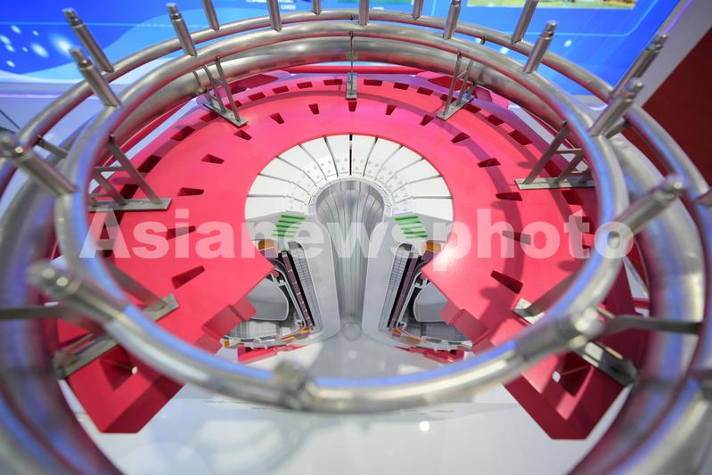 2023年8月28日,山东烟台,2023中国国际核电工业及装备博览会上展示的新一代人造太阳“中国环流三号”模型。